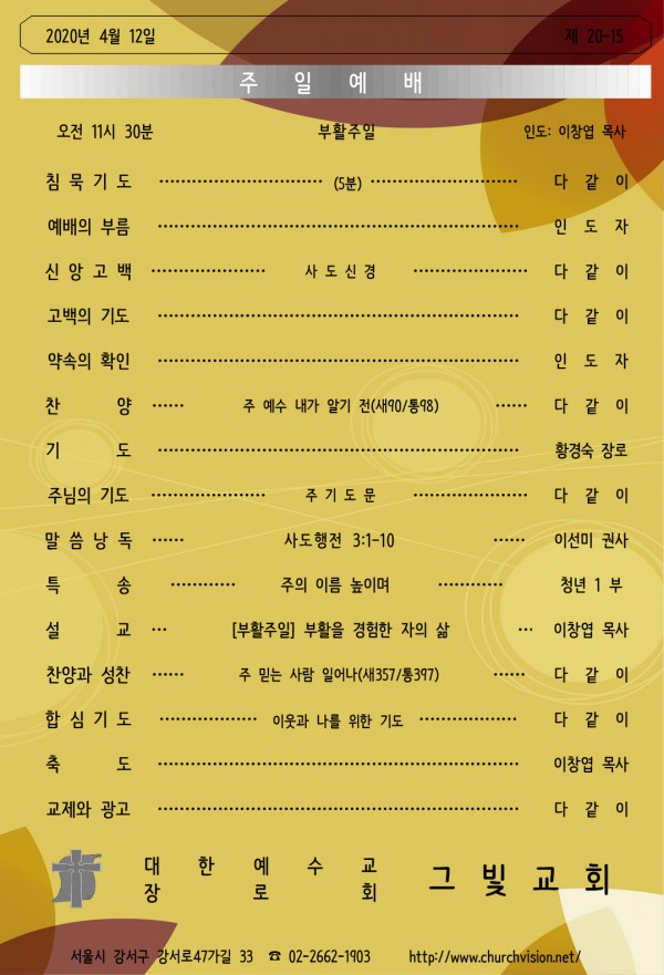 2020년 4월 12일 부활주일예배 안내입니다.